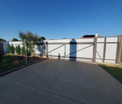 We have a variety of colors in sheet metal and trim. Our fences are framed with metal. Trim comes around the doors, on top of the fence, and the corners. We offer the option of adding a concrete curb to your new fence.