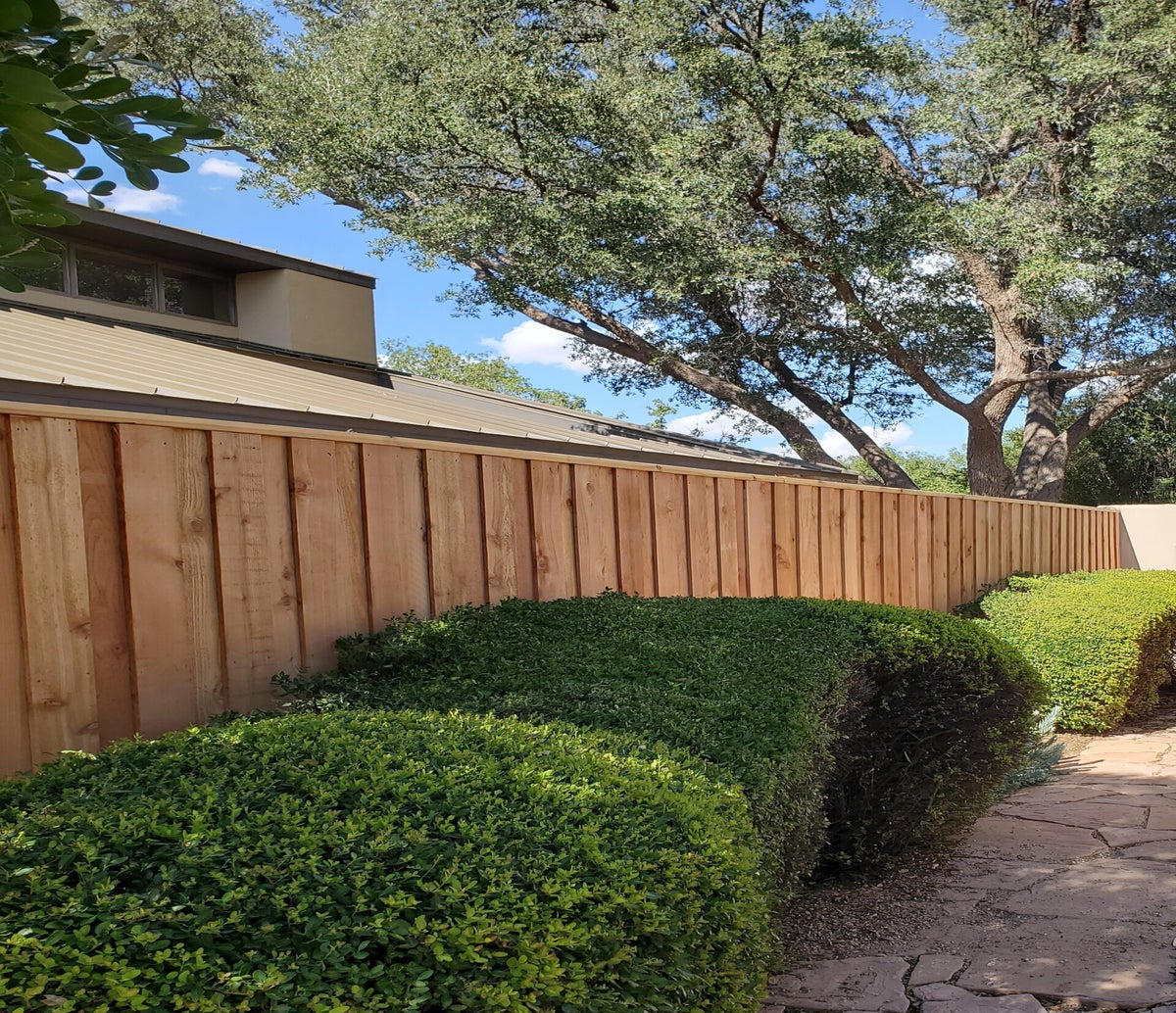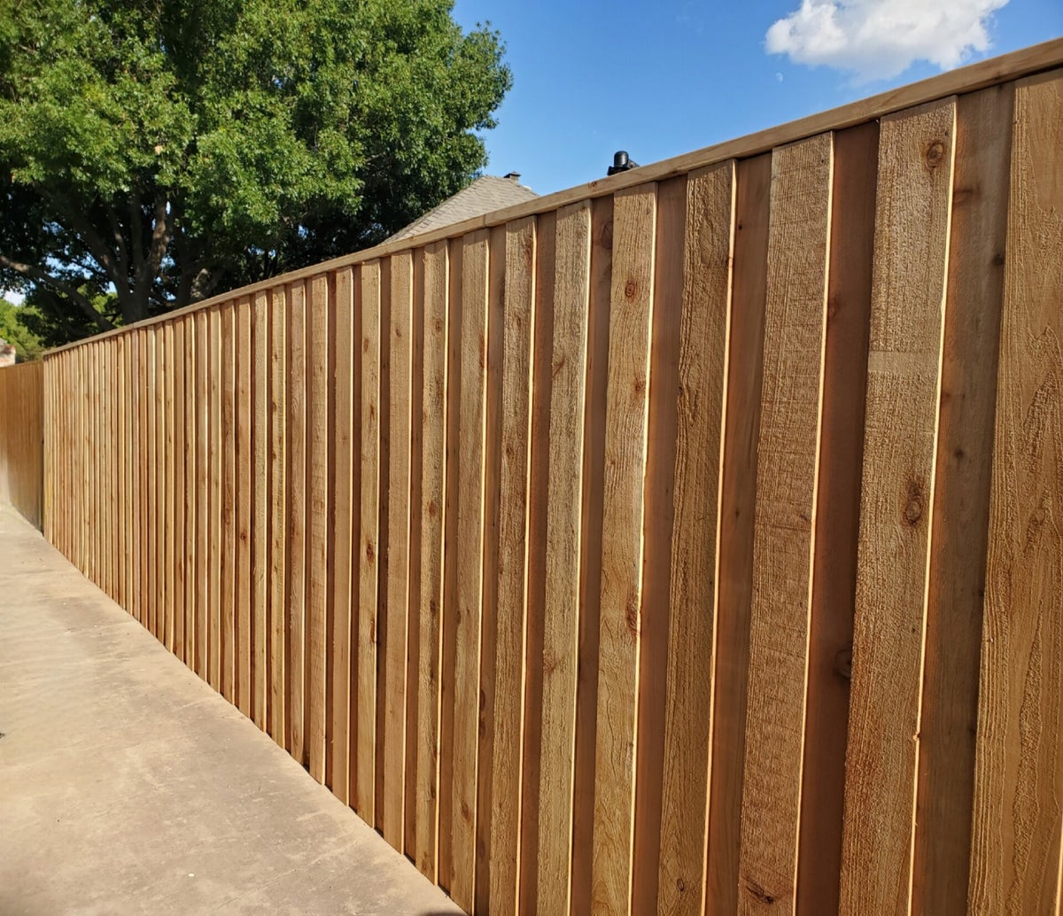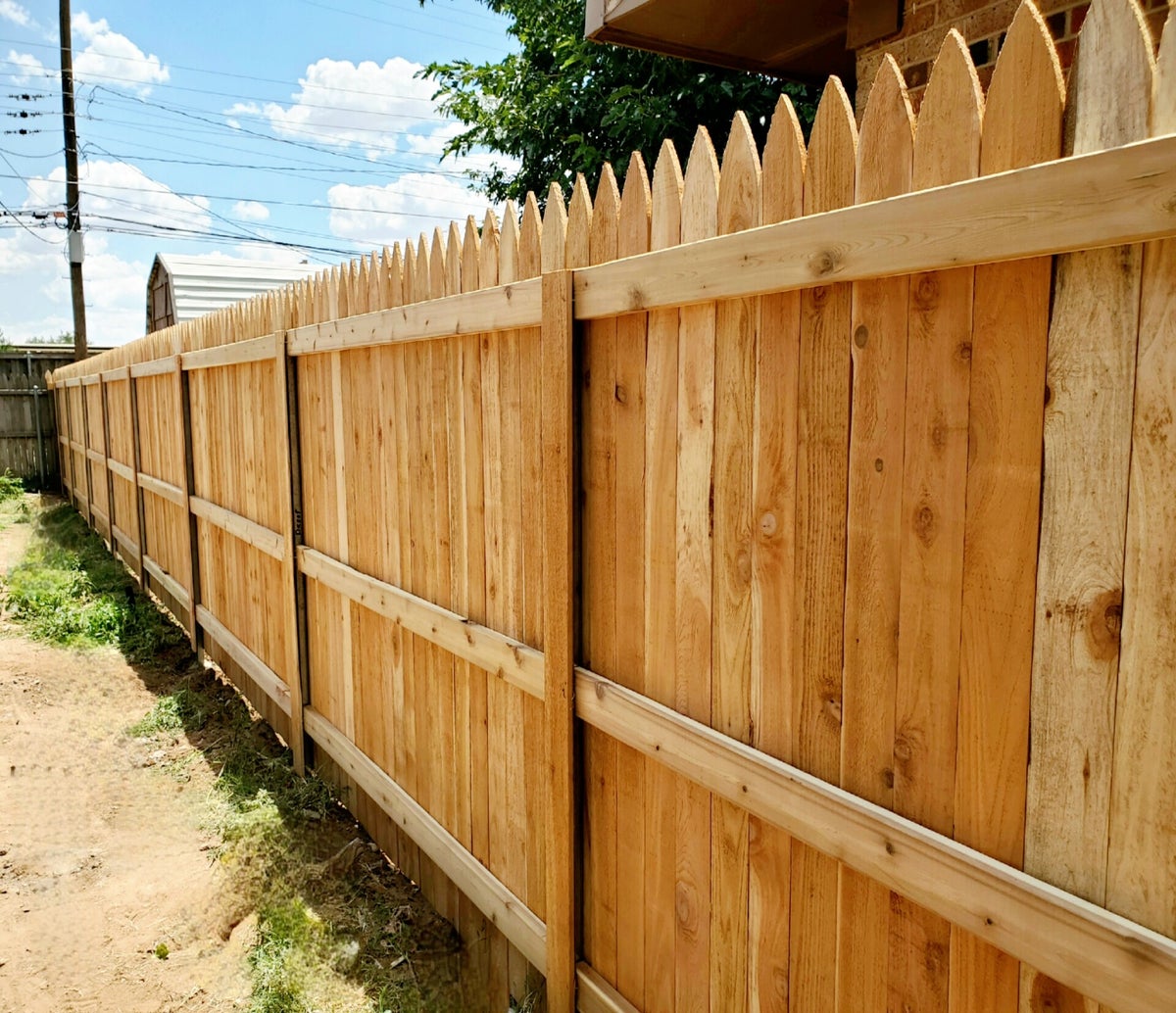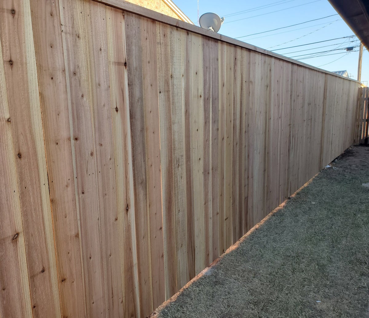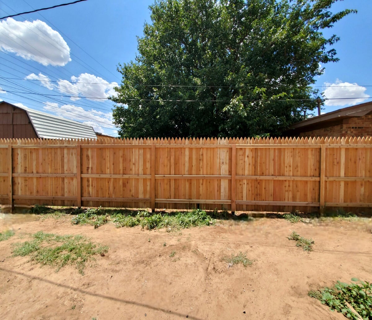 Our standard 6' tall wood fence is made of dog ear western red cedar pickets.